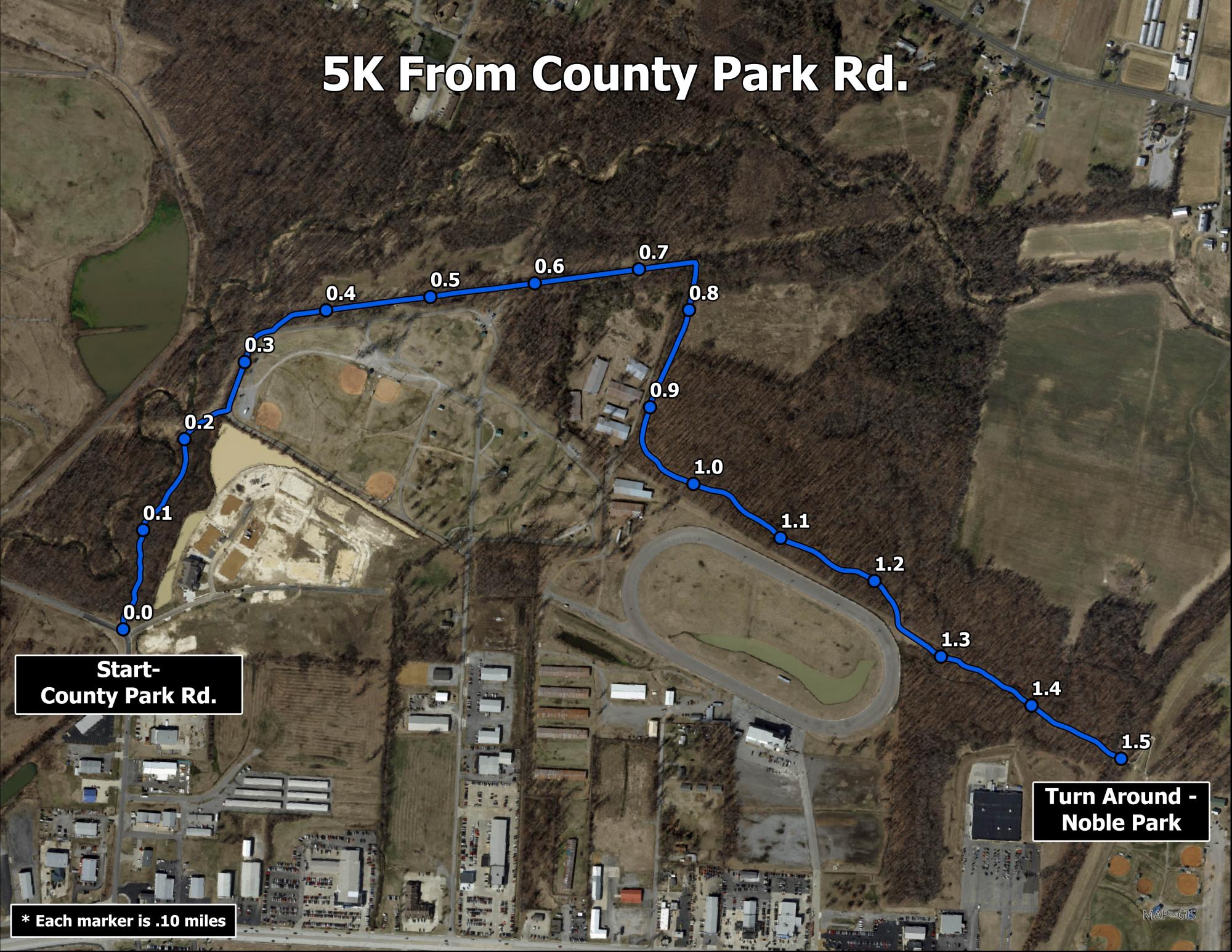 5K - County Park Road to Noble Park and back