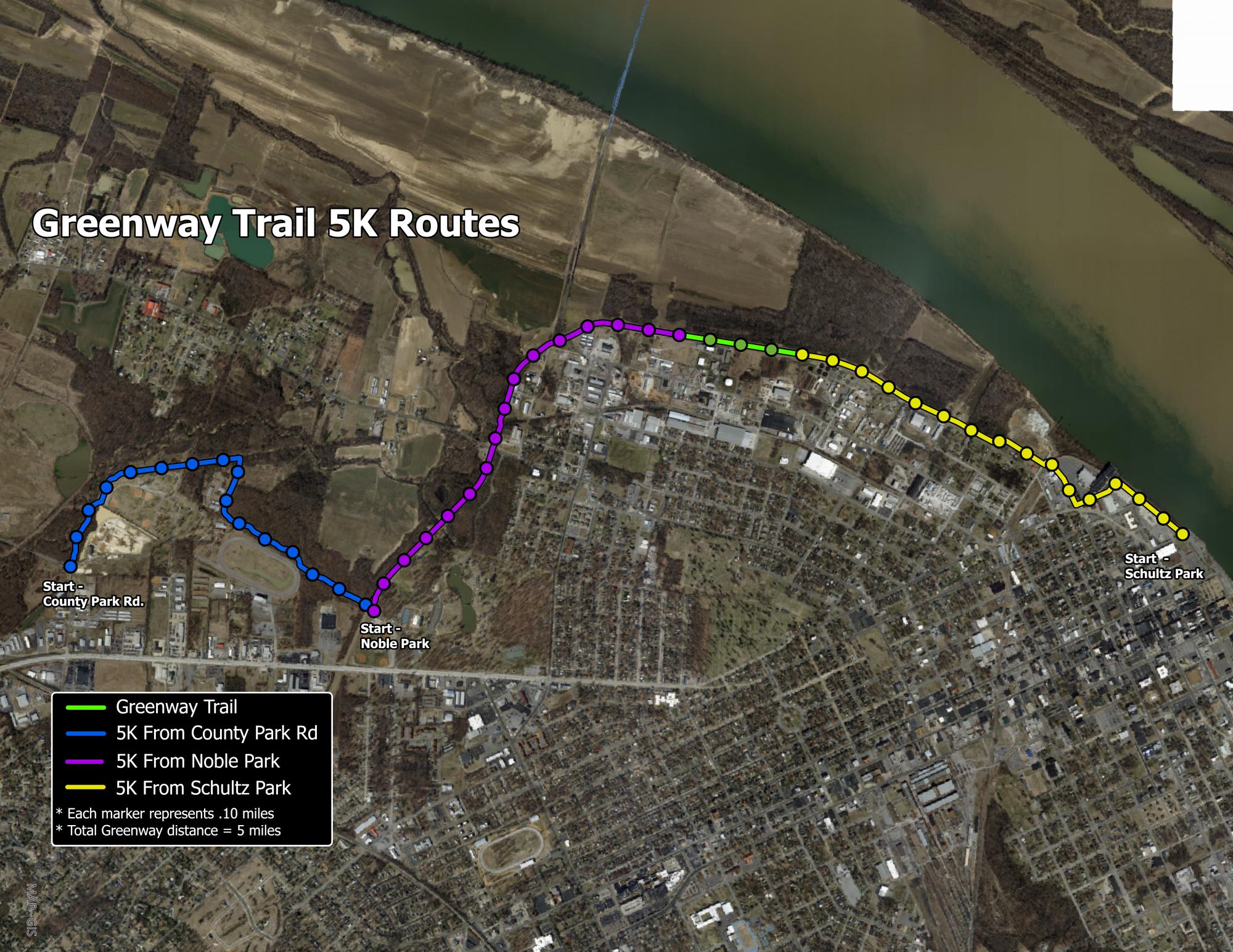 Greenway Trail Map Showing 5K Locations