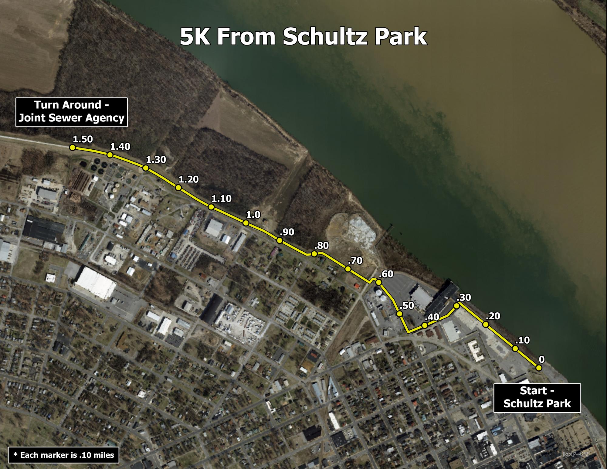 5K - Schultz Park (riverfront) toward Brookport Bridge and back