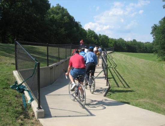 This concrete trail section connects to the underpass at U.S. 45/North 8th Street near the Brookport Bridge and winds along the top of the earthen levee toward downtown ending at Campbell Street next to the Paducah-McCracken County Convention Centers.
